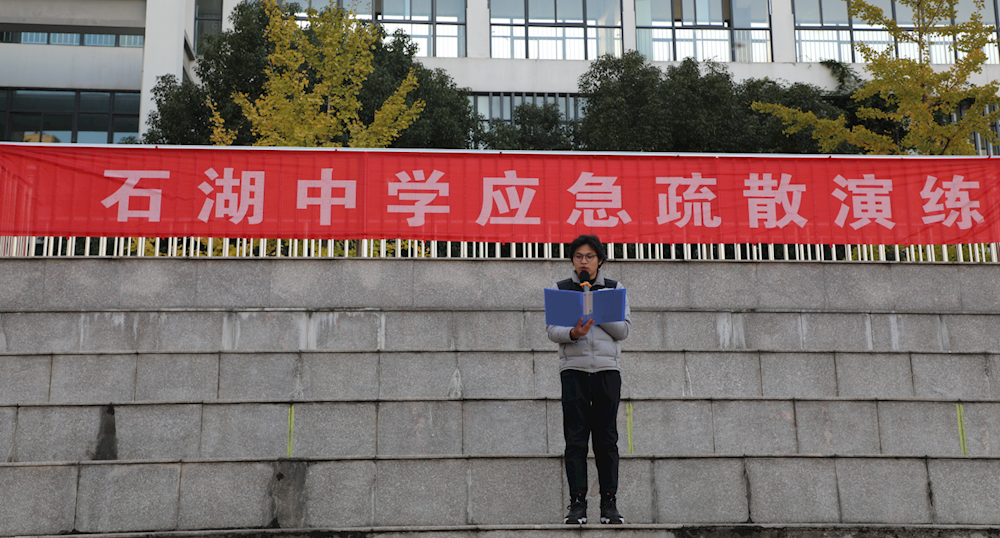 石湖中学开展应急疏散演练 来源: 发布时间:2023-11-20 12:05:56 浏览次数: 次 【字体:小 大】 在第32个全国消防宣传月来临之际,石湖中学进行了一次模拟地震和火灾来临时的应急疏散演练。 分享到: 【打印正文】